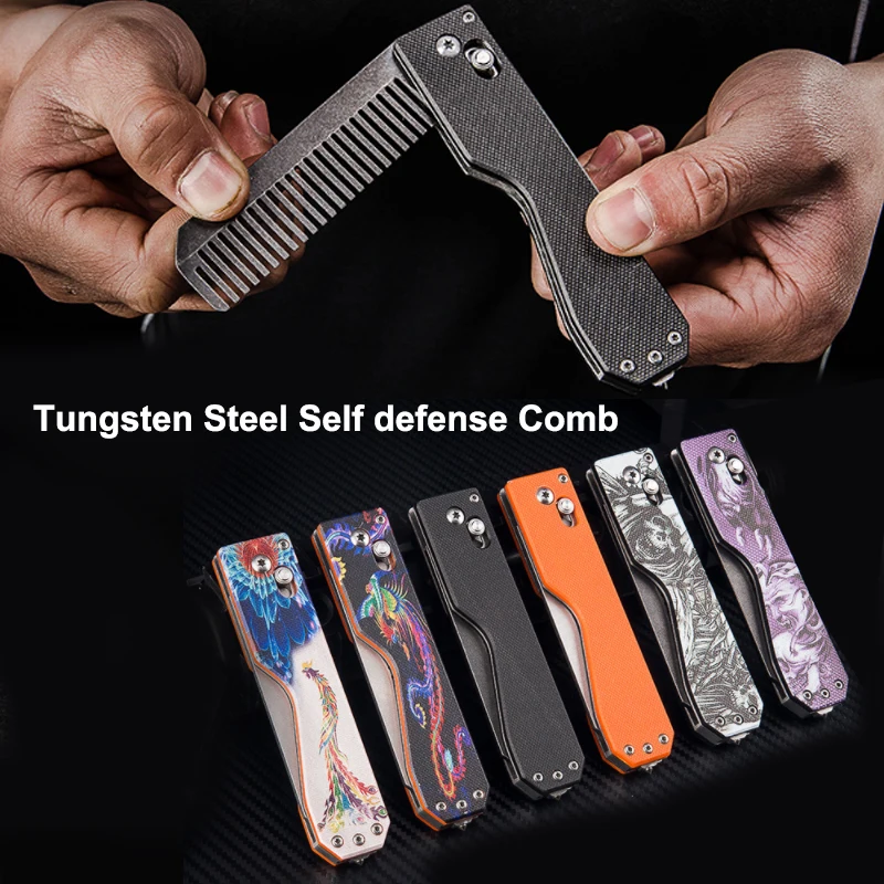 EDC Foldable Tactical Comb Tungsten Steel Head Self defense Personal Security Multifunction Tool Eq